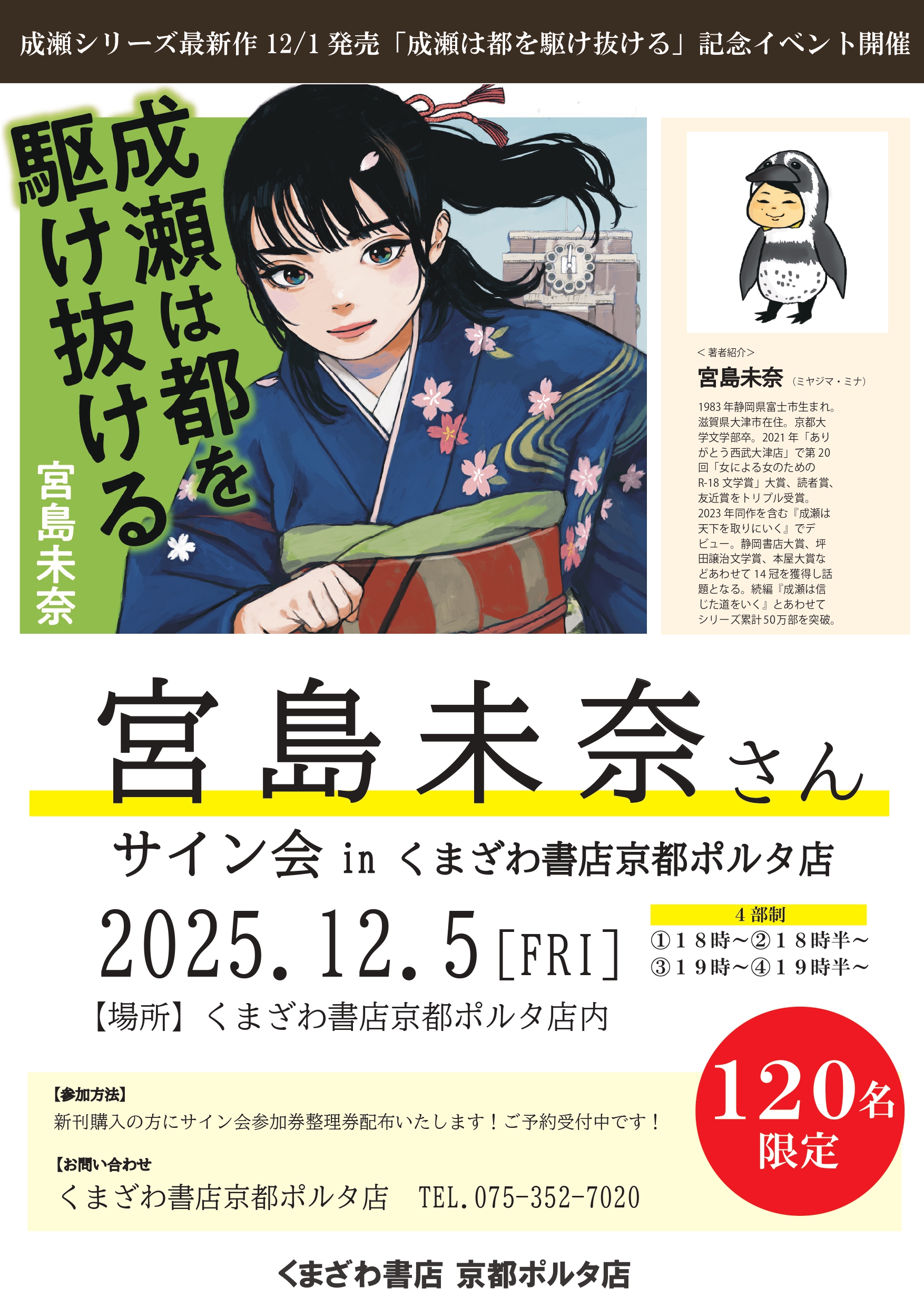 【京都ポルタ店】12/5 宮島未奈さんのサイン会開催!