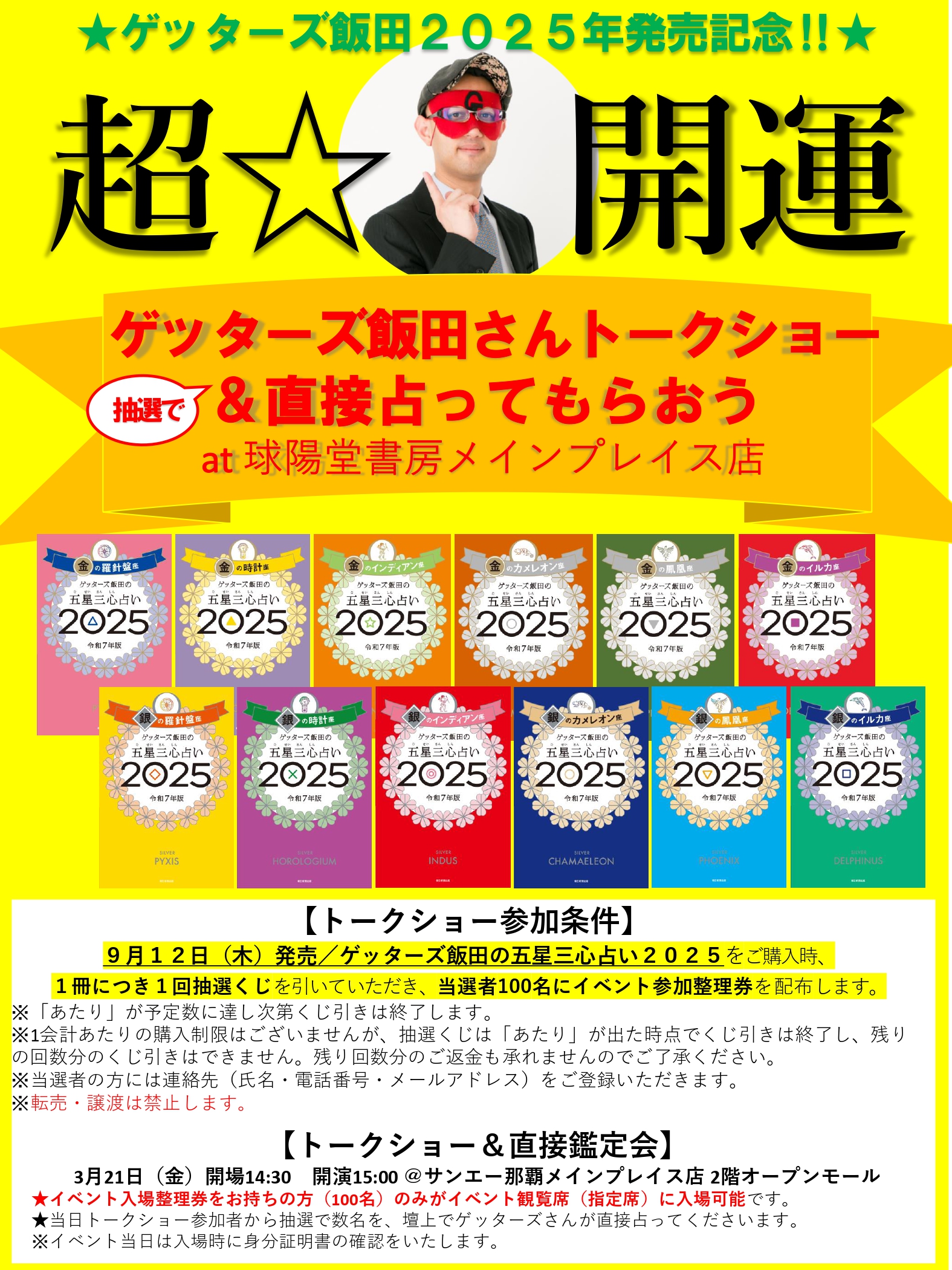 【終了】【メインプレイス店】ゲッターズ飯田さんトークショー&直接占ってもらおう!
