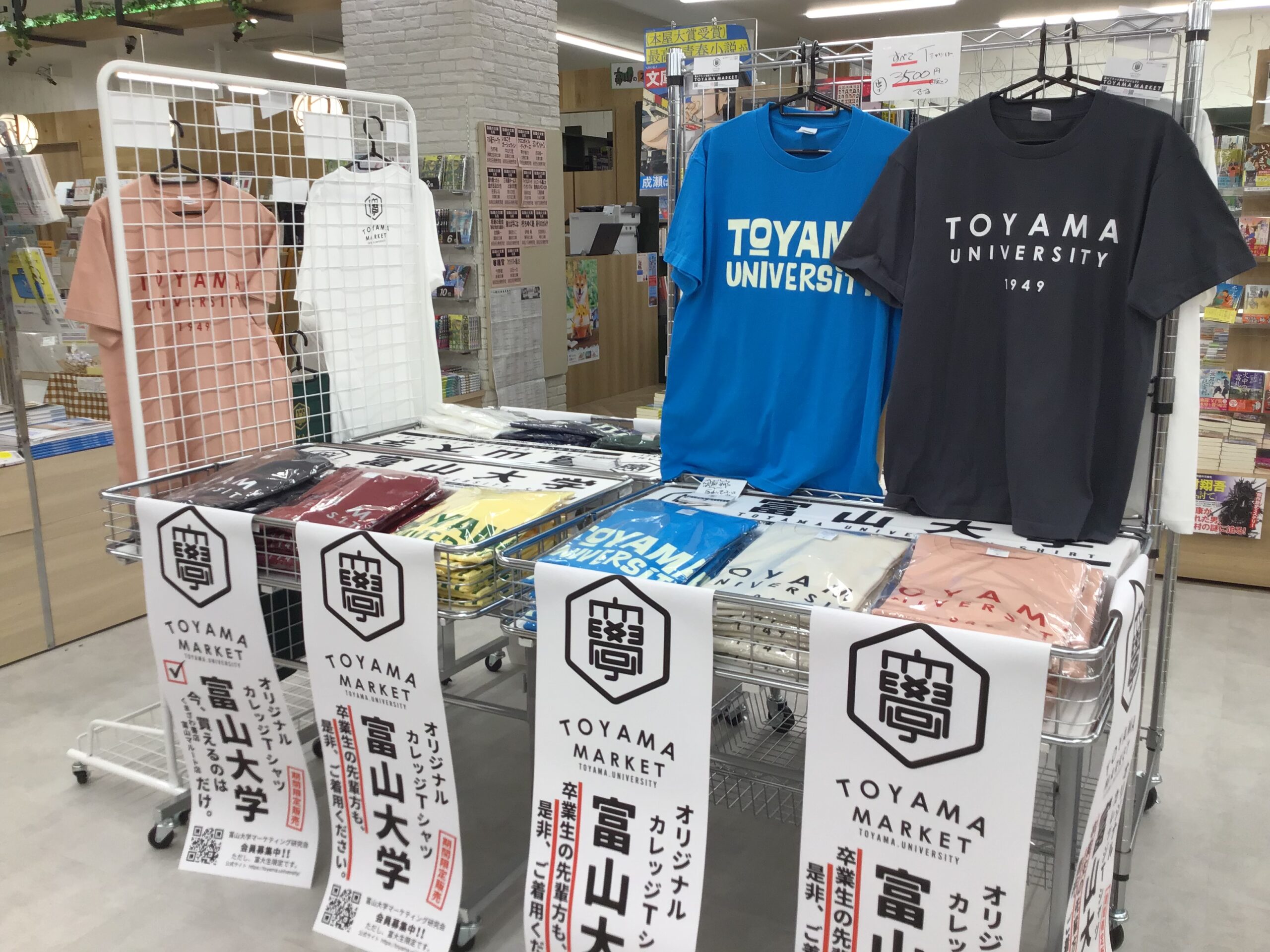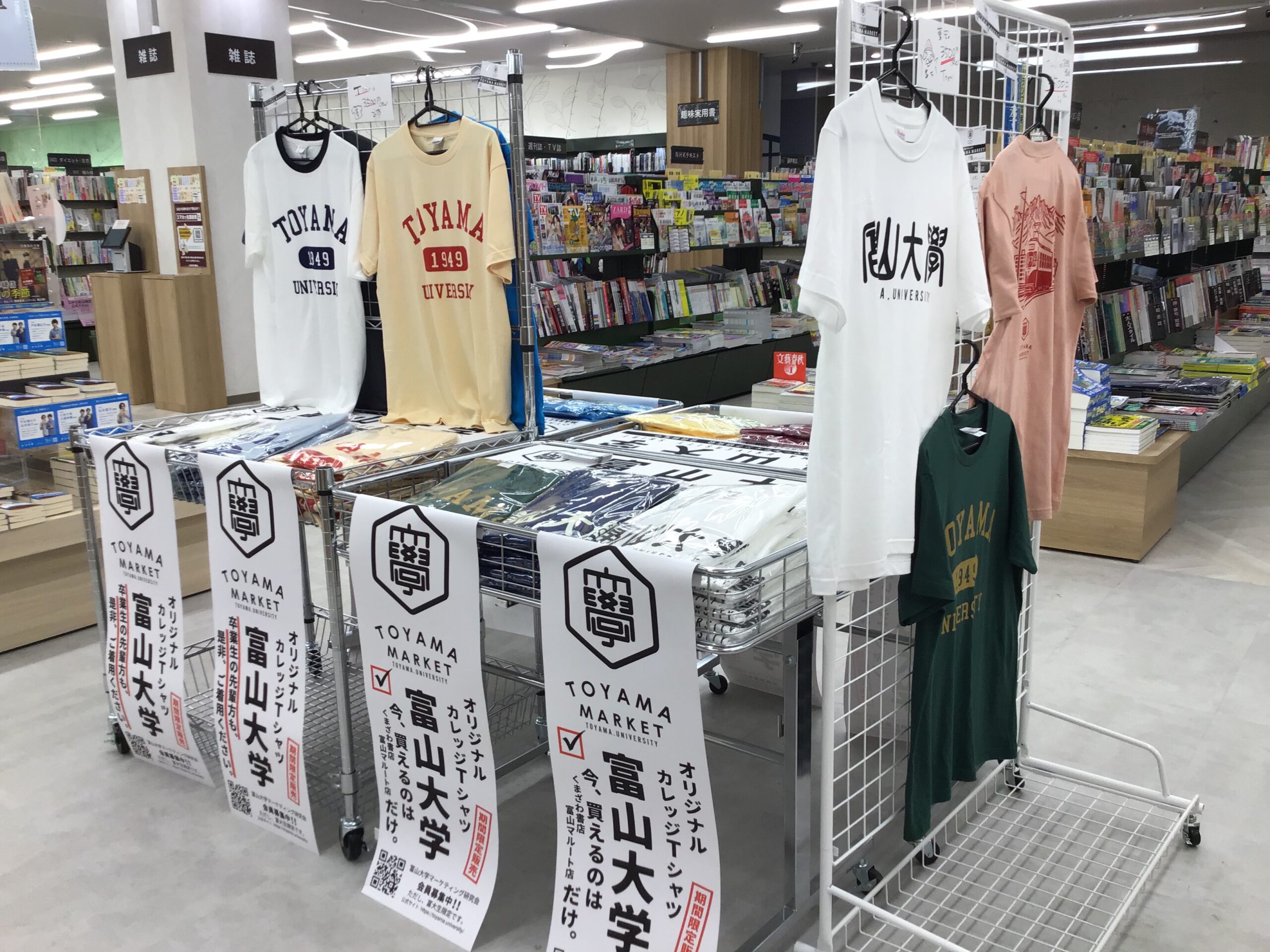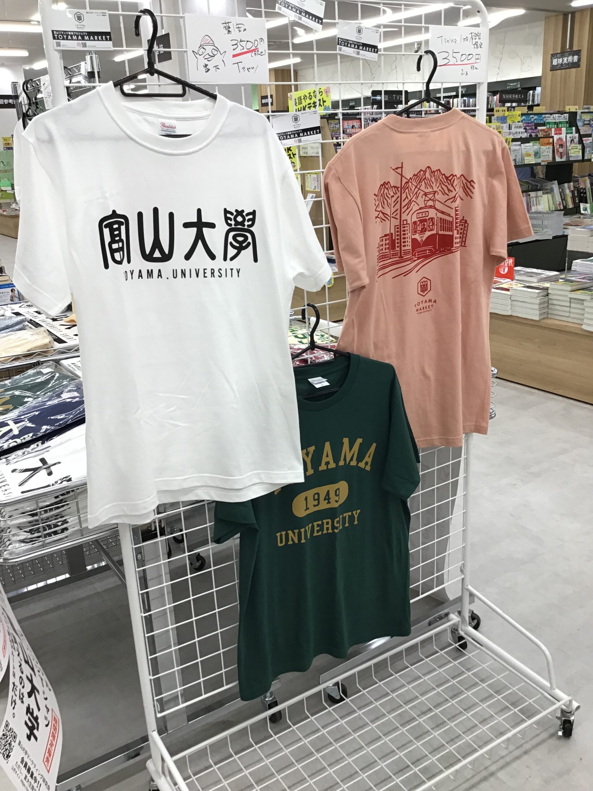 富山大学オリジナルカレッジTシャツを店内で販売しております。