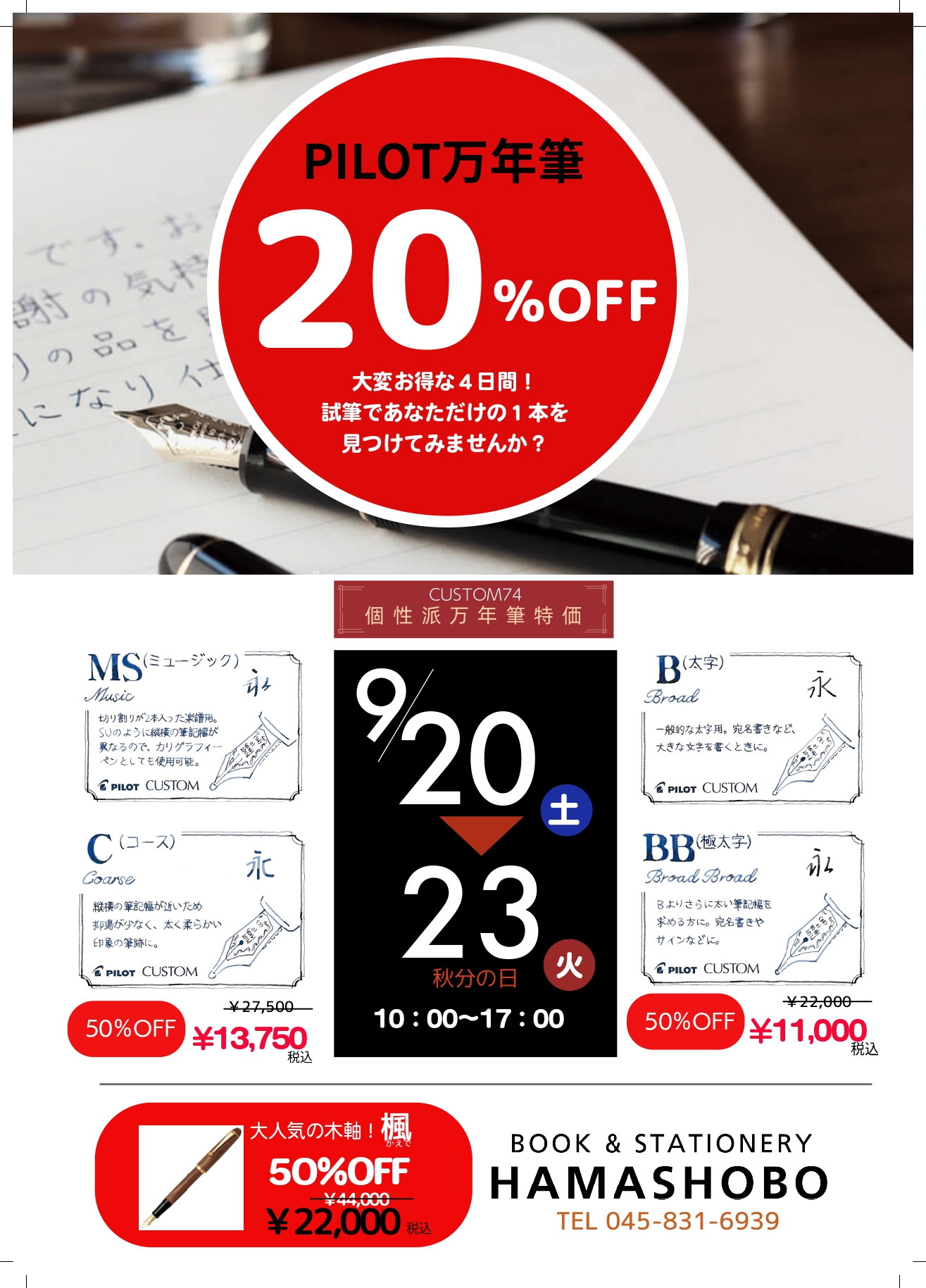【終了】【港南台バーズ店】パイロット万年筆の20%OFFフェア!