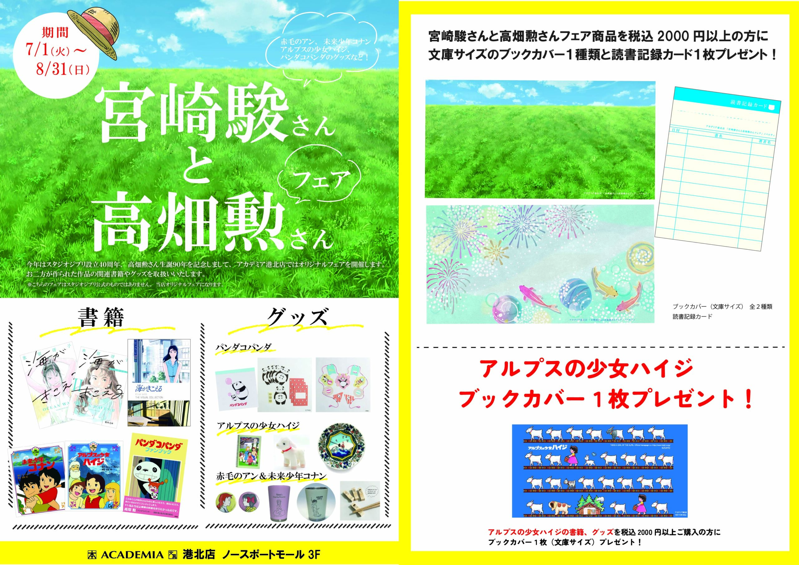 【終了】【アカデミア港北店】宮崎駿さんと高畑勲さんフェア